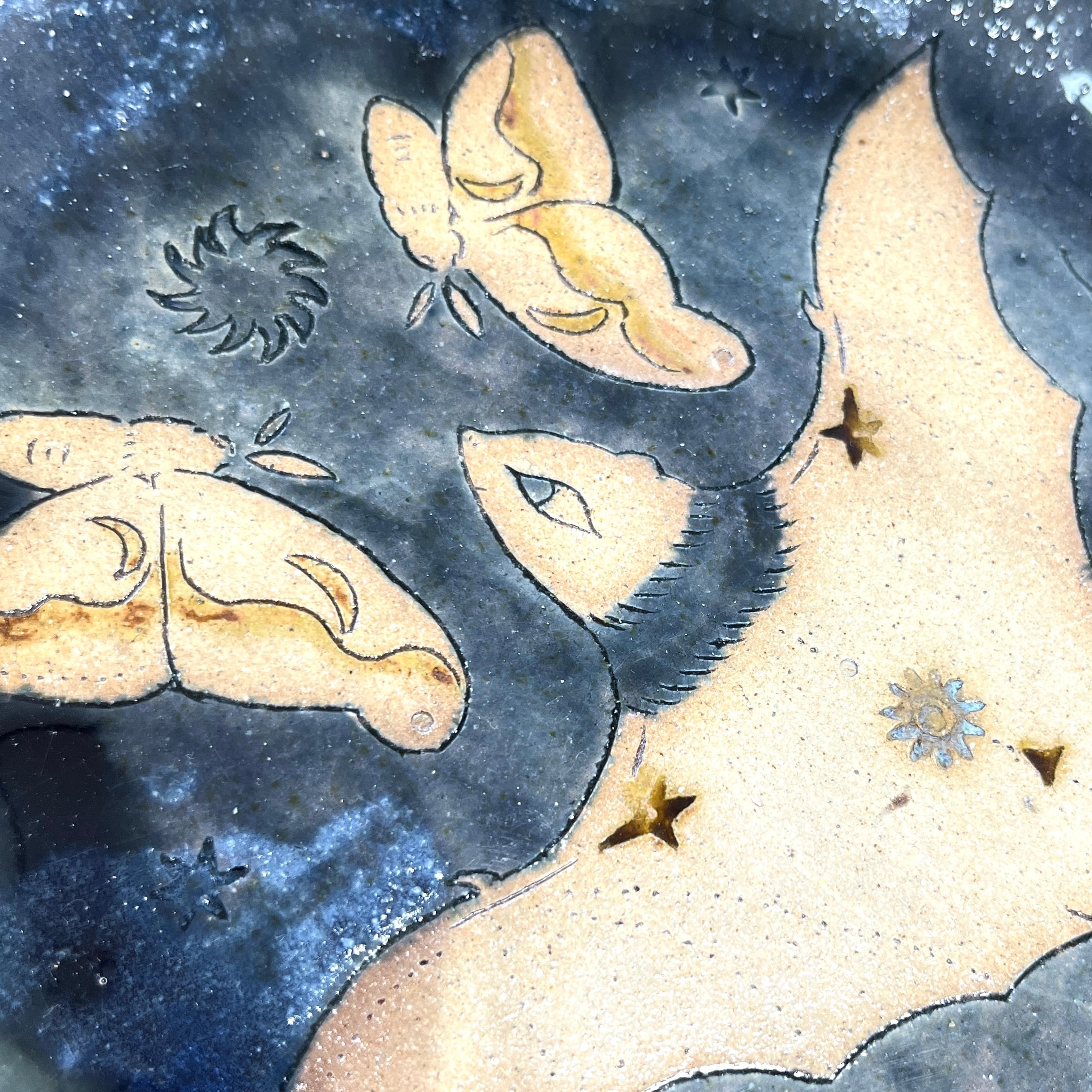 シンジュサンとオオコウモリが舞う平皿。